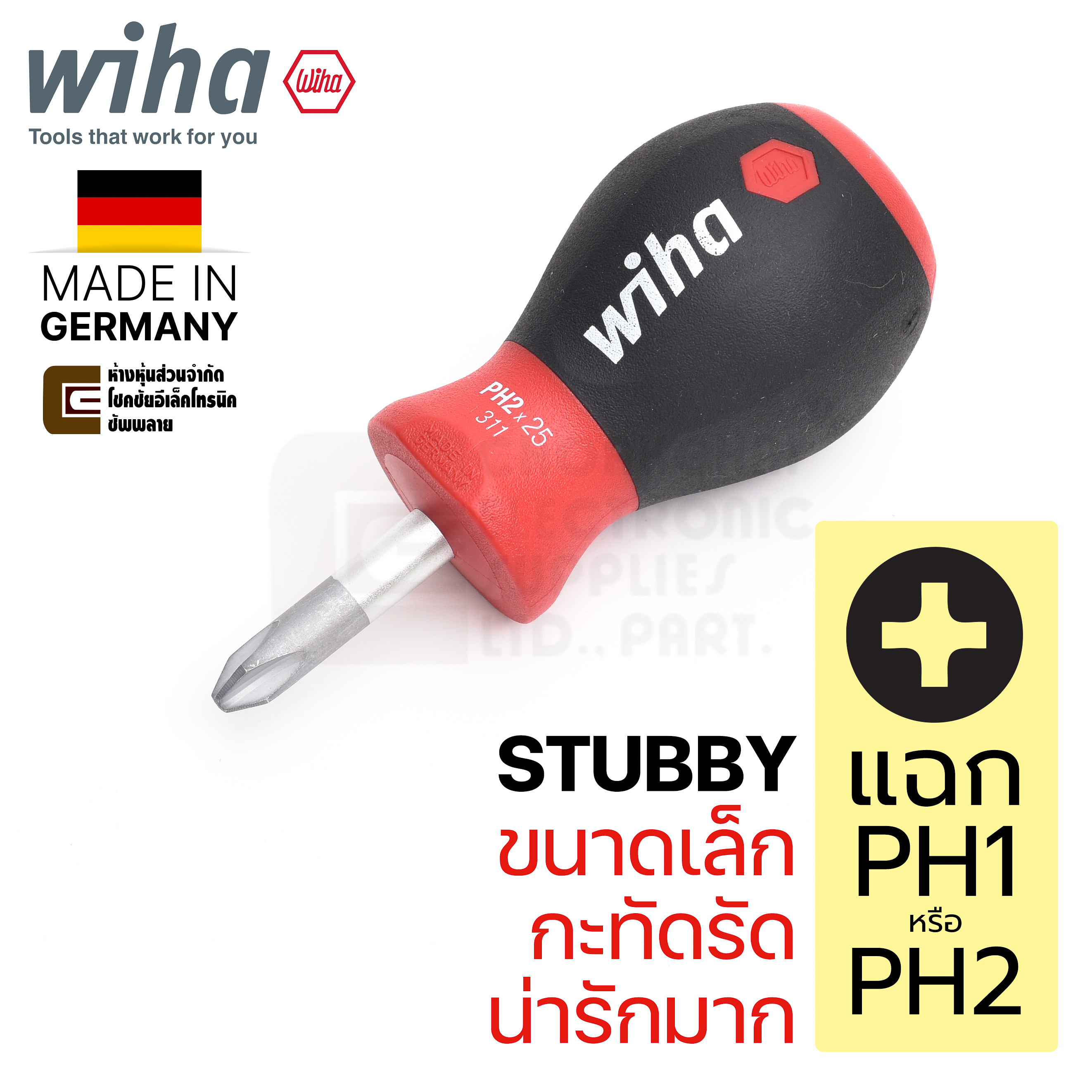 Wiha 311SF Stubby PH1x25 / PH2x25 ไขควงหัวแฉกสั้น | ด้าม SoftFinish จับถนัด | ใช้ในที่แคบ ขันแน่น ไม่ลื่น